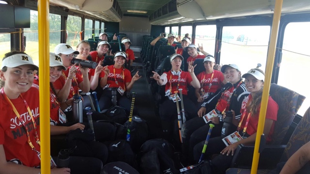 The Team Toba gals arrived in the village on Saturday afternoon and quickly got settled in at the dorms...and the cafeteria. The team took in some of the festivities at the Forks and then today I think karaoke was the plan...if they didn't get distracted by pin trading on the way. We had a great practice at Blumberg this afternoon and are ready to go for our first games tomorrow at 3pm vs. PEI and 7pm vs. Sask. Stay tuned for updates and pics!